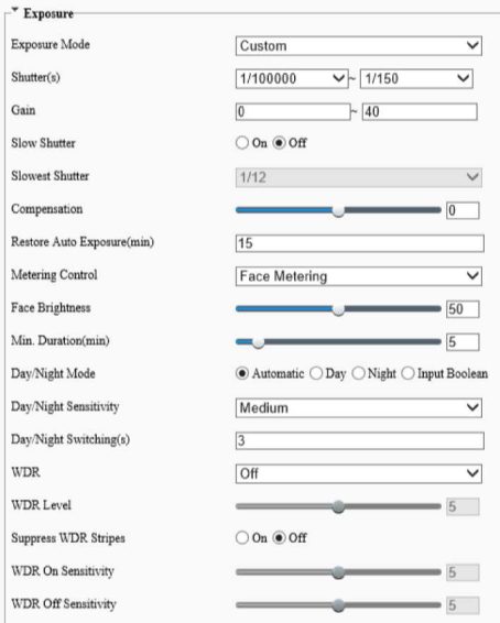 Note: The iris settings do not take effect when the zoom is less than lx.