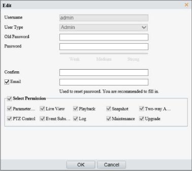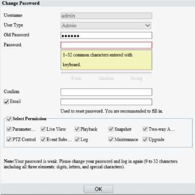 After first login, the Change Password dialog box appears, in which you must set a strong password and enter your email address in case of password retrieval.