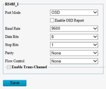 Receive serial port information from the third-party device through the RS485 port and then overlay the parsed information on the OSD.