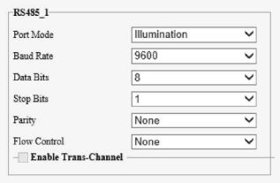Use the RS485 port to transmit data between the camera and the third-party illuminator.