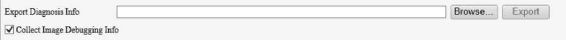 Diagnosis information includes logs and system configurations and can be exported to your client computer. Select Collect Image Debugging Info to collect diagnosis information with accompanying video images to facilitate troubleshooting.