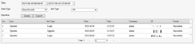 Click Search. Up to 100 logs can be displayed. The latest logs are displayed on the top.