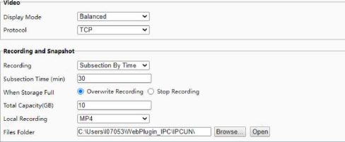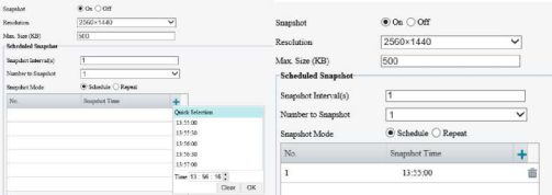 You can change the storage location in Setup > Common > Local Parameters. If the disk has less than 100MB free space, you will be prompted to clear up the auto snapshot folder, and new snapshots will not be displayed in the live view page until the disk space is freed.