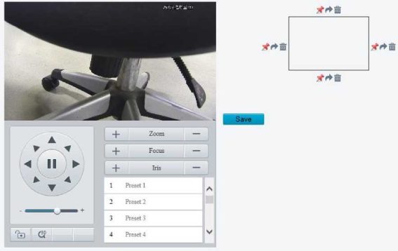Set the tracking area. In 5ePTZ tracking mode, the live view window is divided into 1 panoramic window and 5 small tracking windows. You may rest the cursor on a tracking box in the panoramic window or in a tracking window and use the scroll wheel to zoom in or out, and drag the tracking windows to relocate them.