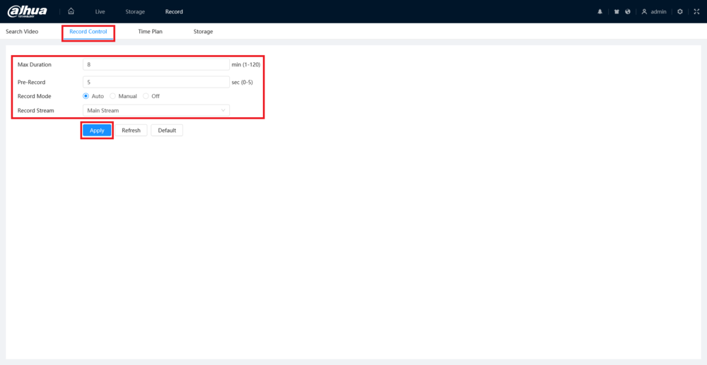 • Record Stream – Which stream to record, the Main Stream or Sub Stream