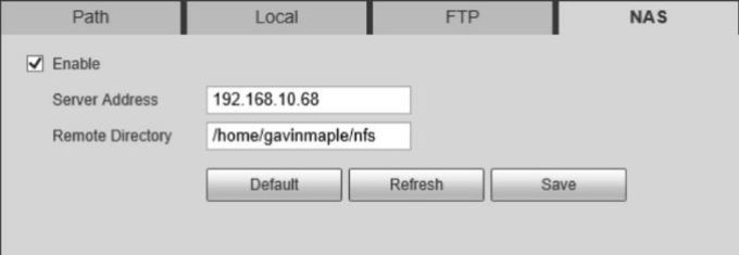 Dahua Camera supports NAS which is only based on NFS, so there must be on NFS server to running NFS service , otherwise cameras are impossible to send recording/images by NAS mode.