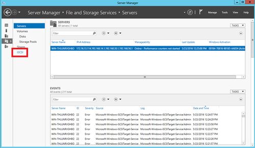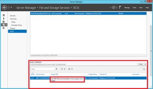 14. In the Server Manager window scroll down and you will now see your target IQN and iSCSI setup information.