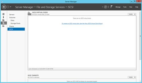 4. Select “To create an iSCSI virtual disk, start the New iSCSI Virtual Disk Wizard” link.