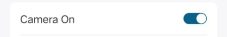 — Toggle the Camera On bar to enable the camera feature in Camera Settings.