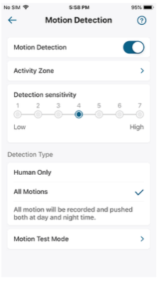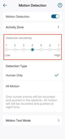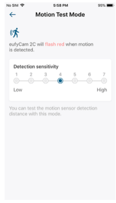 5. Check if your camera’s sensitivity level is too low. You can increase the motion sensitivity level from low to high to verify if it is able to detect motion better. For more information, please refer to How to Adjust the Motion Sensitivity on eufySecurity Cameras.