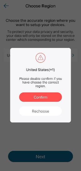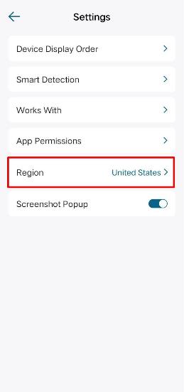 4. Please make sure the shared account is in the same login environment as your main account (owner). You can find the main account’s login environment and adjust the login environment of the shared account by tapping the three-lined button in the upper-left corner of the App’ Device tab and go to Settings > Region. As indicated in the picture.