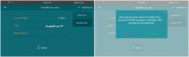 End users can delete the family master account on the indoor monitor.