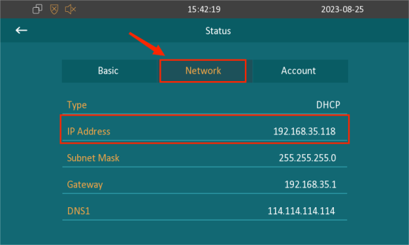 IP address(es) can be obtained on Akuvox indoor monitors. With the IP address, you can log into the device web interface for configuration, troubleshooting, and more.