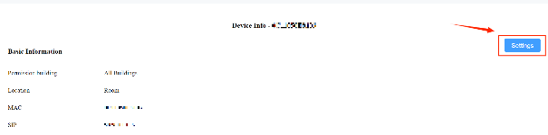 1. On the device Info page, click the Settings button.
