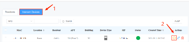 3. Click Intercom Devices and then the Info icon of the desired device.