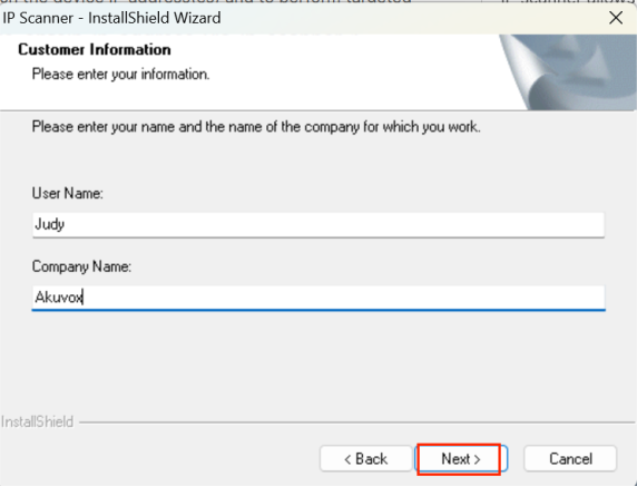 c. Enter User Name and Company Name, and click Next.
