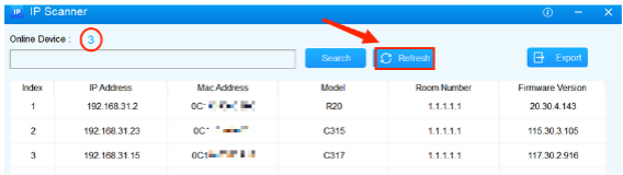 You can also obtain the device’s IP address using the Akuvox IP scanner.