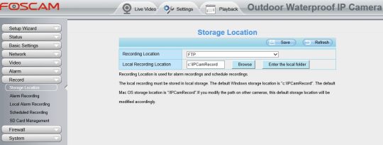 Under “Record”, click on Storage Location, and make sure “FTP” is selected for Recording Location.