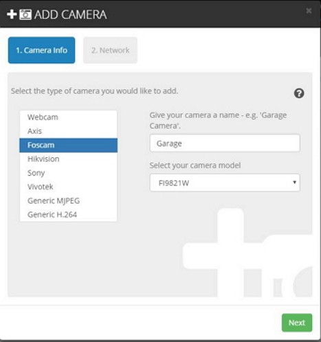 Click on “Add Camera” and pick “Foscam”. Choose your camera model, then name your camera whatever you’d like.