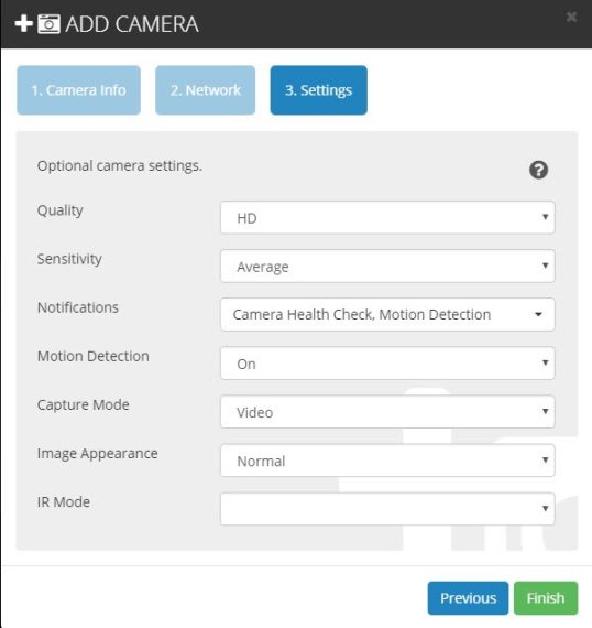 “Video” clips. Image appearance settings include the ability to adjust your cameras image based on your needs and the camera placement. Settings include “Flip”, “Mirror”, “Flip-Mirror” and the default “Normal”. Once you’re done, click on “Finish”.