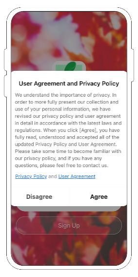 1.Tap ‘Sign Up’ to create an account, then select ‘Agree’ for the ‘User Agreement and Privacy Policy’. If you have already signed up then skip below to the section called ‘Connecting the camera to your Wi-Fi router’.