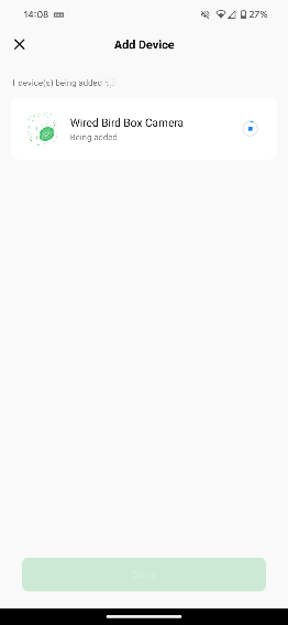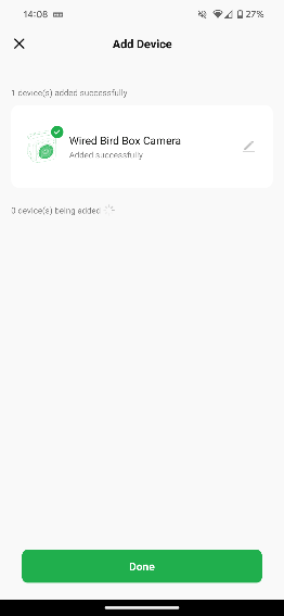 Wired Bird Box Camera 3rd Gen setup via Green Feathers app