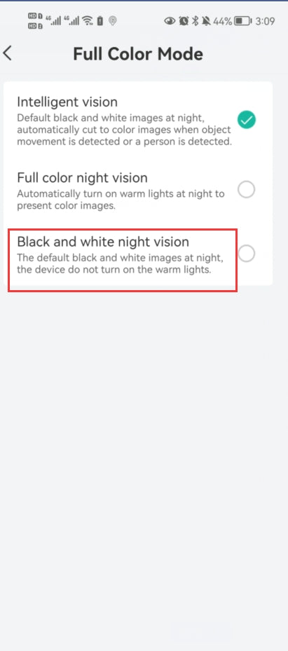 2. Click on Full color mode,then choose black and white night vision,