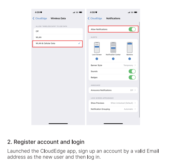 Launched the CloudEdge app, sign up an account by a valid Email
