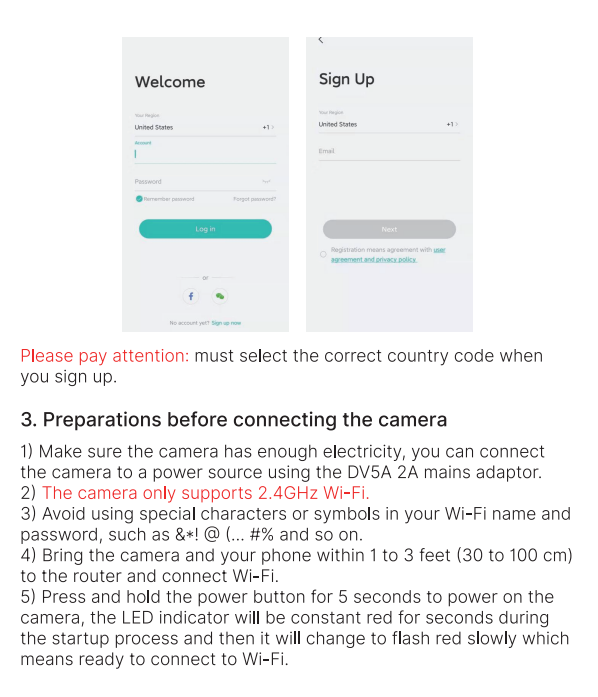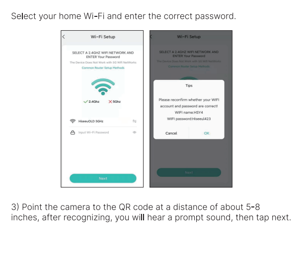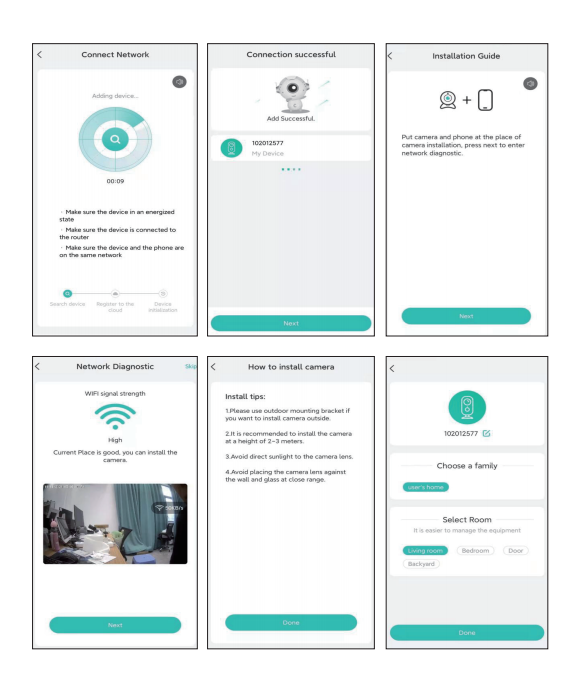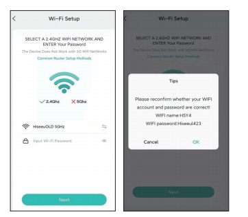 1)This camera can only connect to 2.4 GHz WiFi signal. It does not support 5 GHz wifi. Please check whether your mobile phone is connected to 2.4 GHz WiFi or 5 GHz wifi.