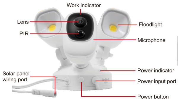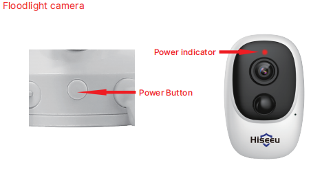 Press the power button then the floodlight turns on and the camera indicate light will also turns red flashing.