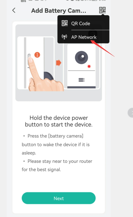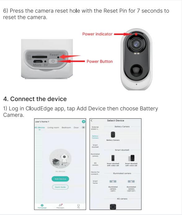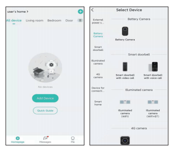 1) Log in CloudEdge app, tap Add Device then choose Battery