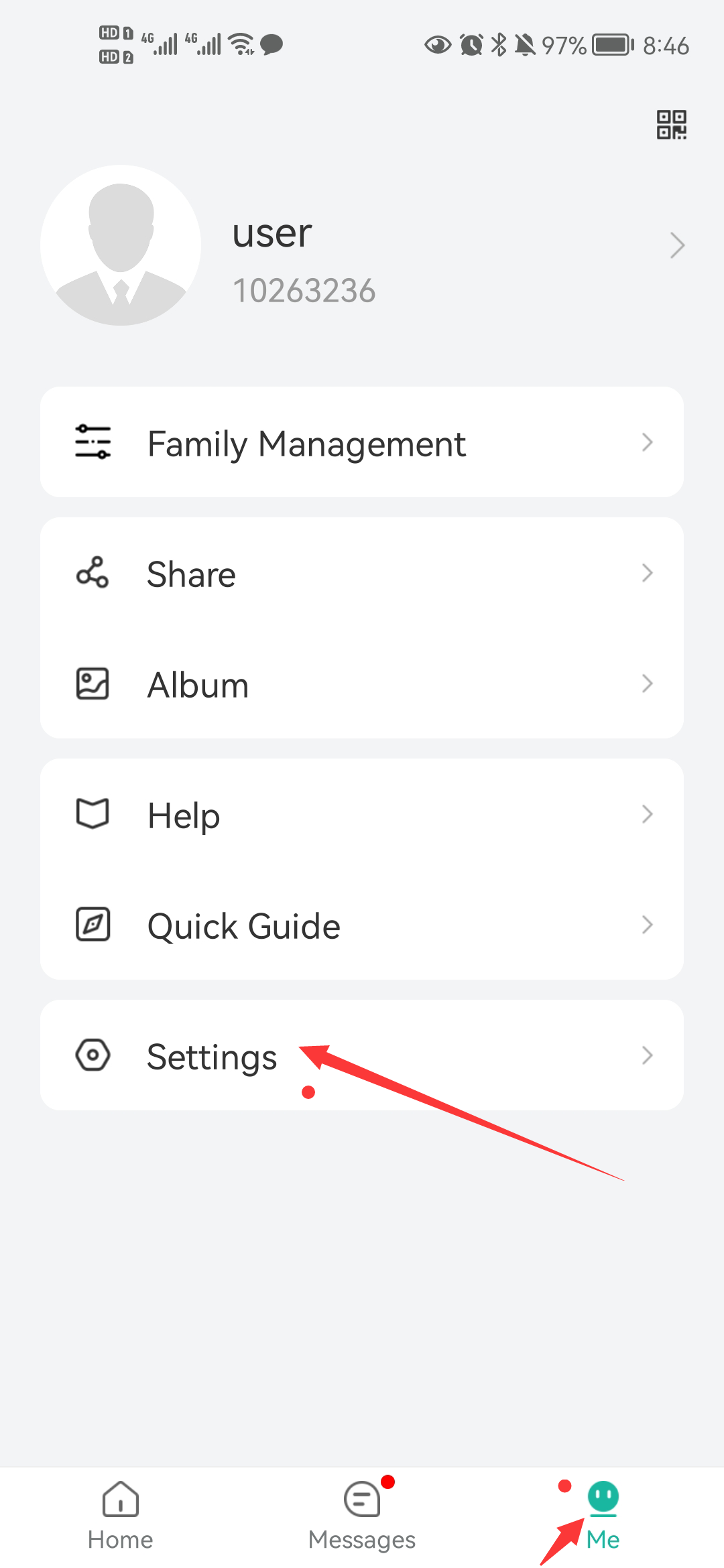 1) Tap the shortcut settings button > Device Share > Add > Scan QR Code