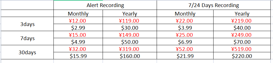 CloudEdge Cloud Service Fee Standard