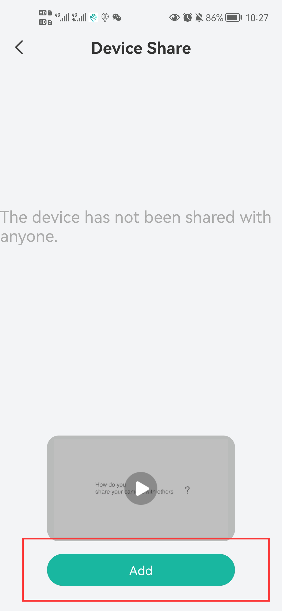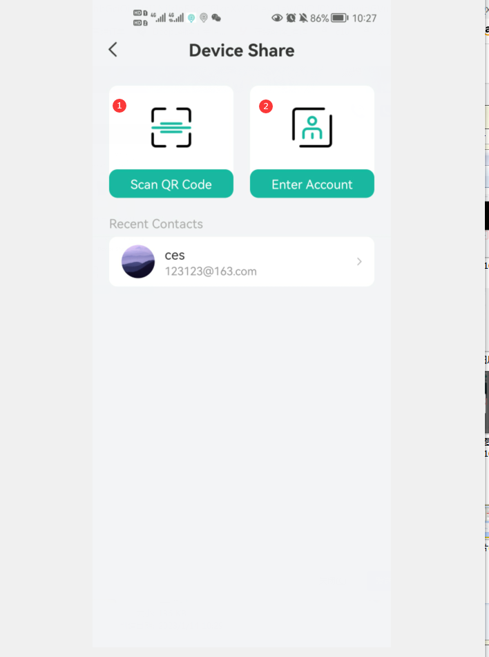 2) Tap the shortcut settings button > Device Share> Add> enter