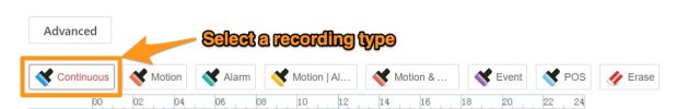 Continuous – The camera will record continuously. If you want the camera to record 24/7, you would fill the grid for the whole week with this option.