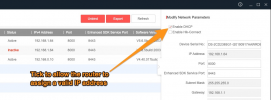 Once activated, ticking the box beside your device will change the network settings in the “Modify Network Parameters” window, so that they match your LAN. You need to make sure that you enter the password for that device before clicking “Modify” for these changes to be saved.