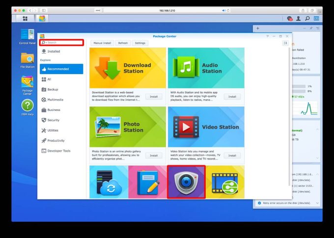 Step 3: Search for and install the Surveillance Station software (it should be on the home page of the package center, if not you can use the search bar to find it)​
