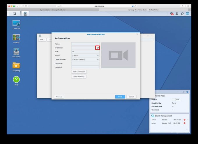 Step 8: Enter the camera details manually or click the Search icon next the IP Address box​