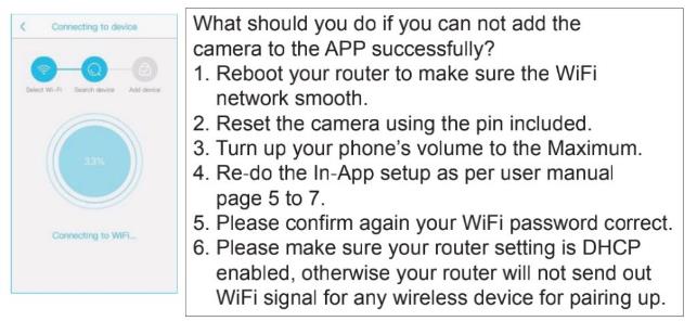 3. Make sure the distance between your mobile phone and the device is no more than 30cm. And your mobile, camera and router are in the same room.
