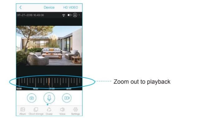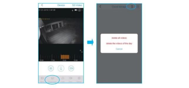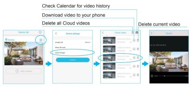 You can play back all cloud videos here. Cloud video length is 8 seconds defaulted and 20 free video clips per day. The oldest footages will be overwritten by the newest one day by day.