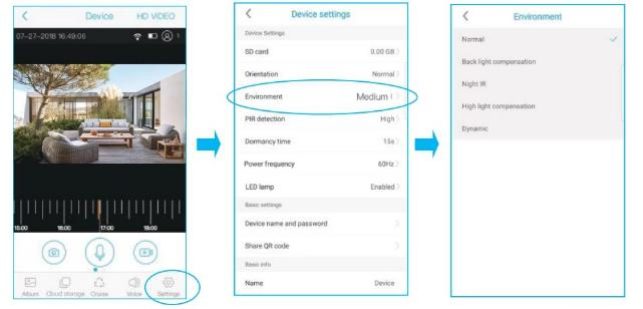 You can choose to set it as Normal, back light compensation, night IR, High light compensation or Dynamic according to your actual light environment of installation place.