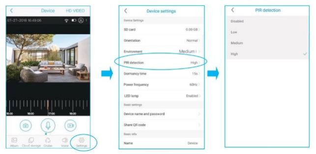 You can set the PIR sensitivity as Disabled,Low,Medium and High.