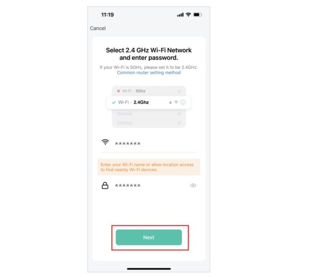 Enter your wifi password, make sure the wifi password and wifi are correct and click Next.