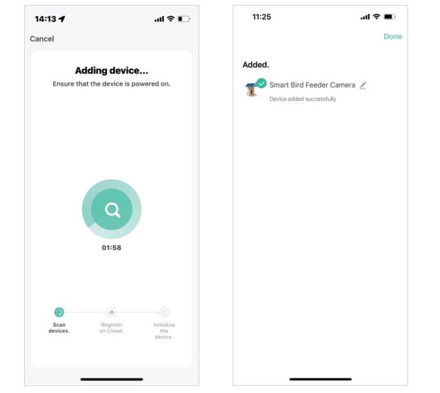4. Scan the QR code with the Bird Feeder camera. You will hear a prompt sound after a successful scanning.