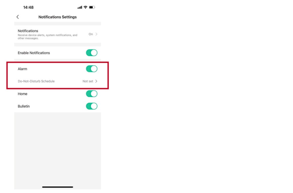 3. Click “Alarm” to turn on or off. You also can set schedule for “Do Not Disturb Schedule” at the same interface.