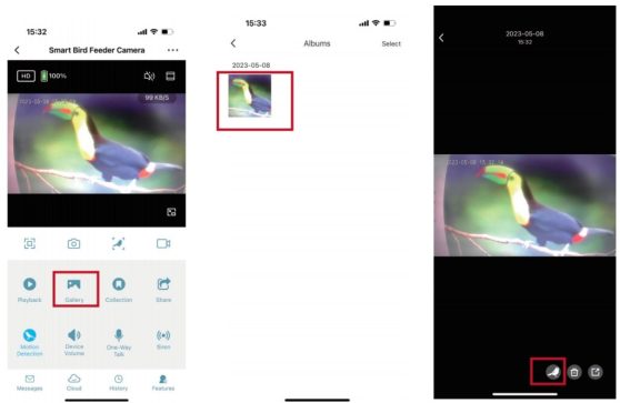 2. Click “Gallery”-Click “photo”-Click “bird” icon