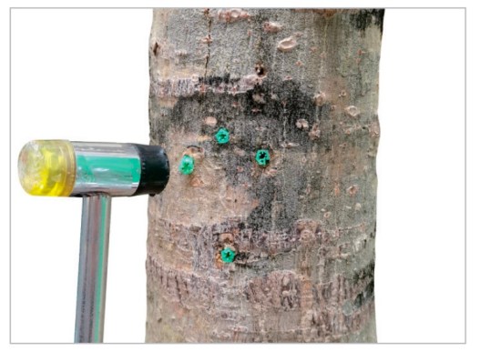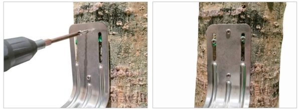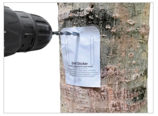 1. Stick the sticker on the tree or wall and drill holes within the range marked on the sticker.