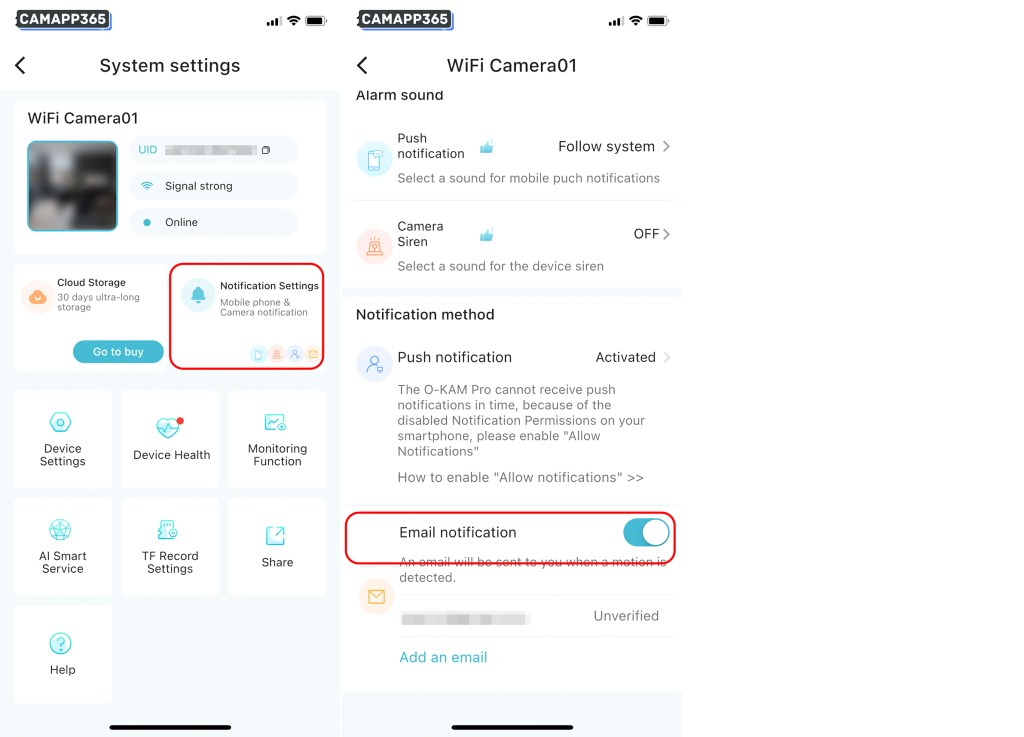 Click Add an email , then enter the email address you want to receive alarm notification and finish the setting.