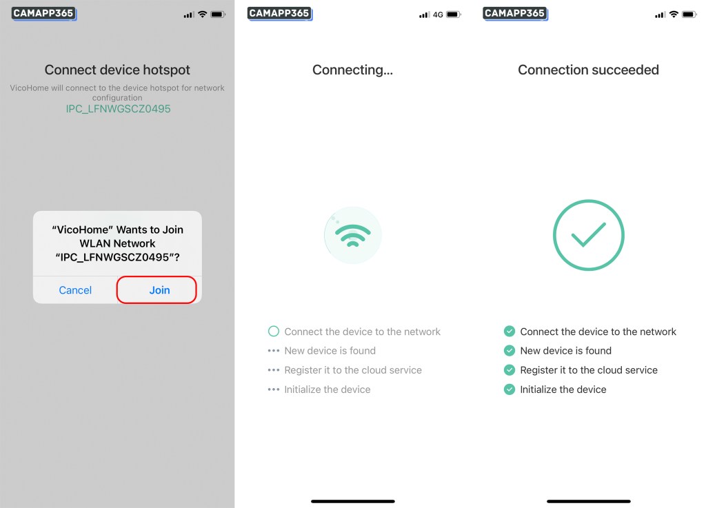 6. Click Join, and then wait for the VicoHome camera to connect to Wi-Fi, which takes about 1-2 minutes.