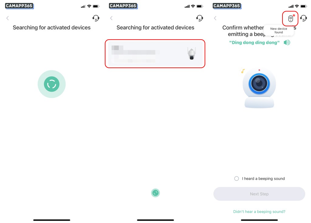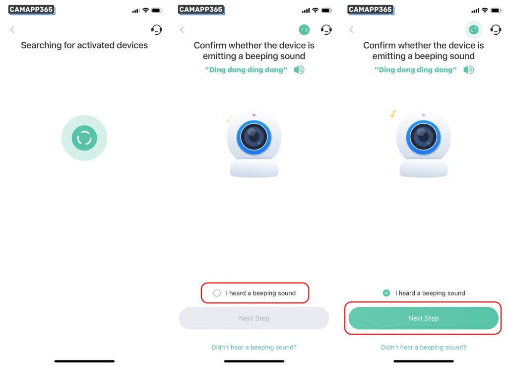 4. If you’re connecting the VicoHome camera for the first time, you’ll hear a “Ding dong ding dong” sound. Tap on I heard a beeping sound.